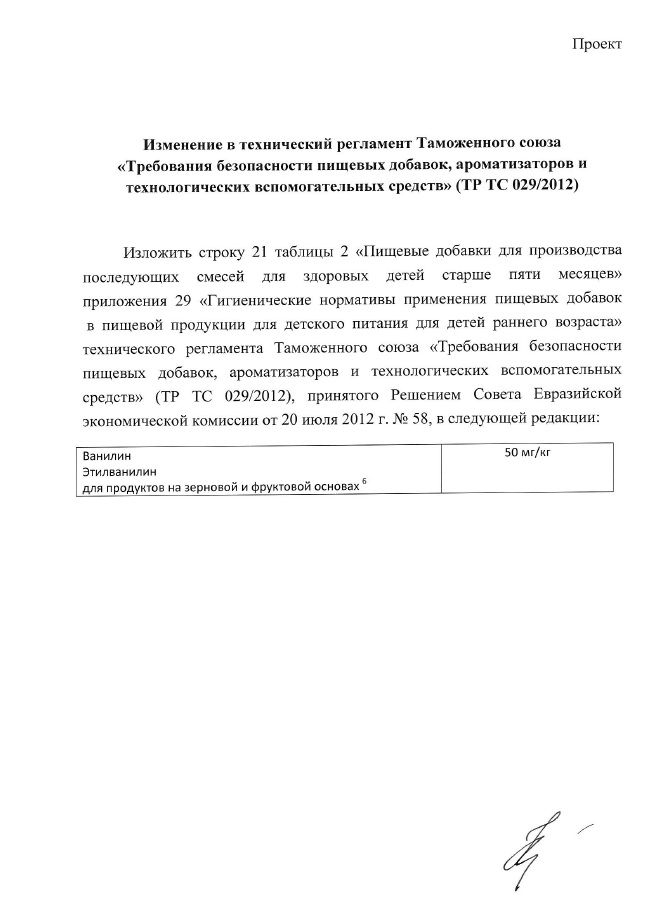 Проект изменений в технический регламент Таможенного союза